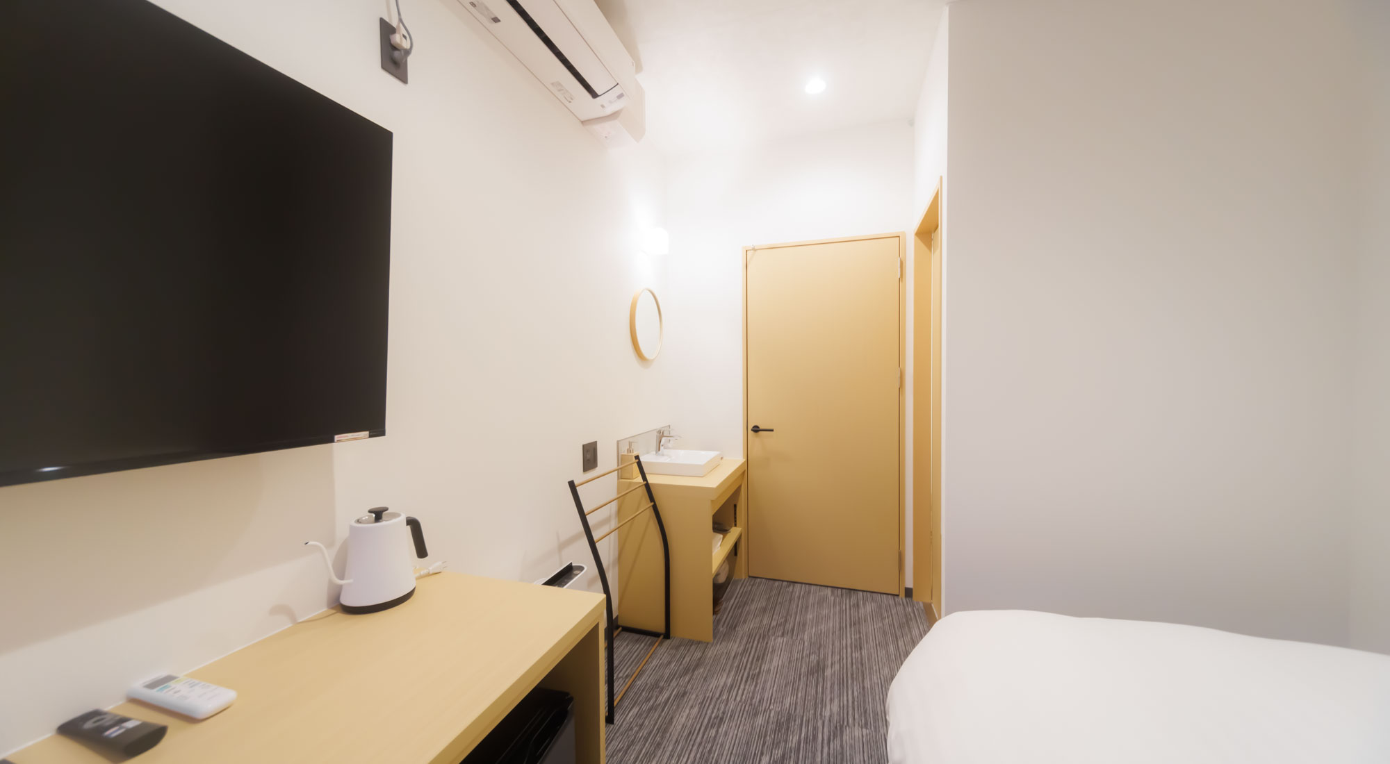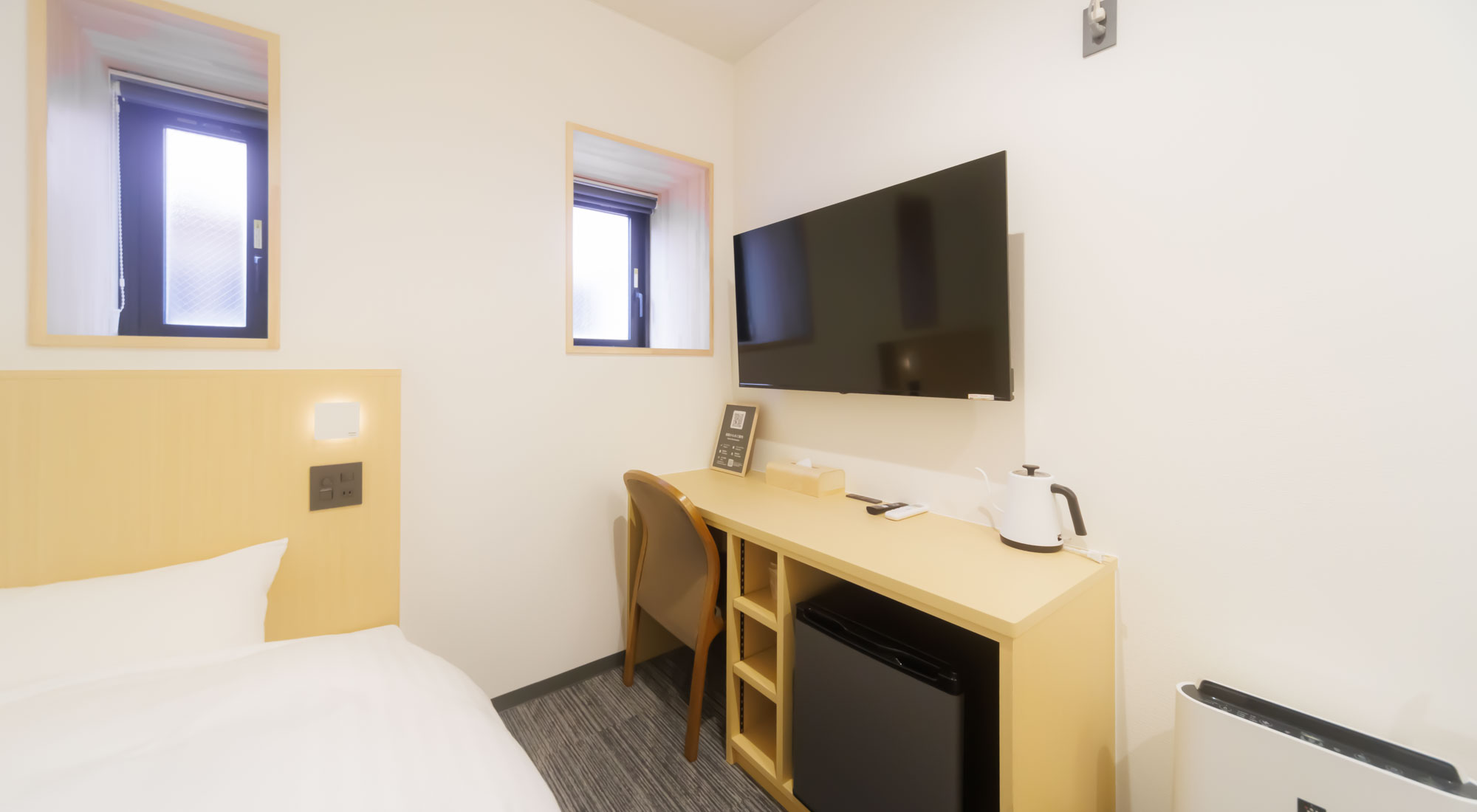 全室にワイドデスクを配置し、高速Wi-Fiを完備。ビジネス利用にも便利です。
